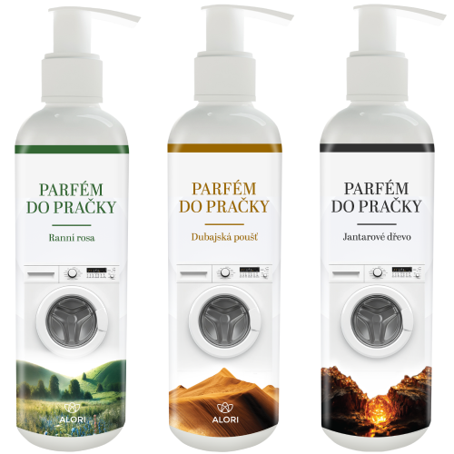 Objevte výhodný balíček tří vůní do pračky - Ranní rosa, Jantarové dřevo a Dubajská poušť. Svěží, elegantní i exotická aroma pro dlouhotrvající vůni vašeho prádla.