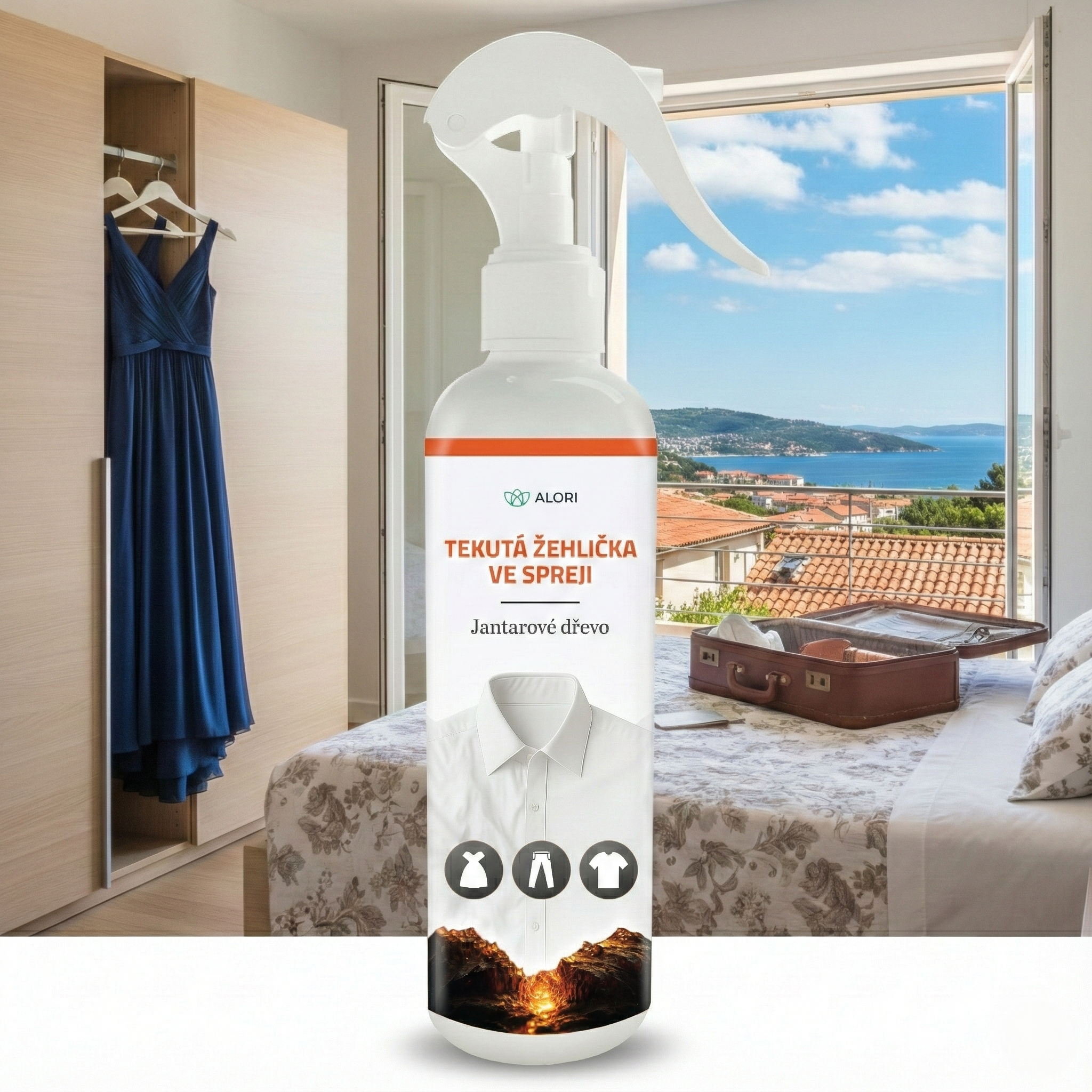 | Klasická žehlička nebo běžné spreje | ALORI Tekutá žehlička ve spreji | |